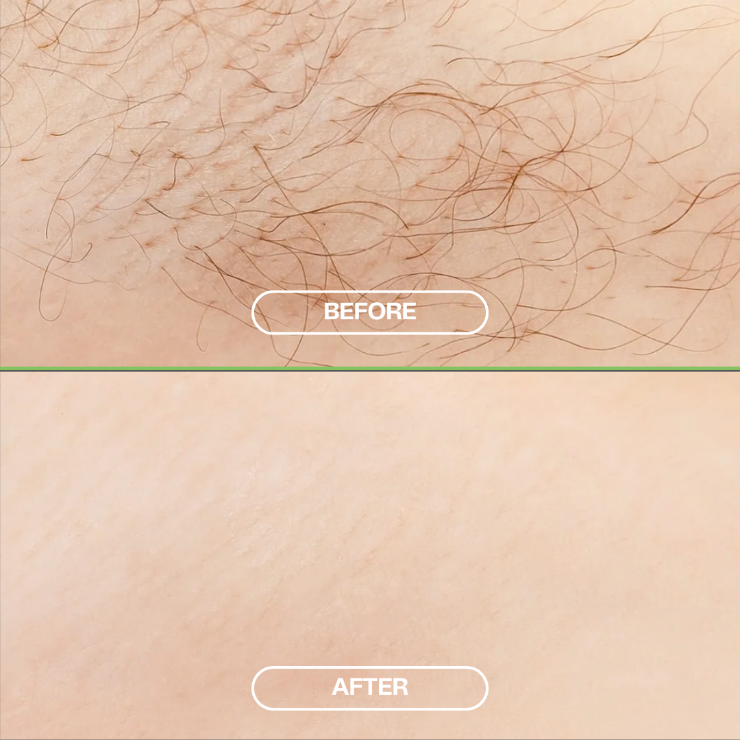 Noticeable hair reduction can be seen in as little as 2 treatments, with more noticeable results after each treatment from then on and up to 100% hair removal after just 8 treatments. Results can vary based on hair thickness, colour and density.