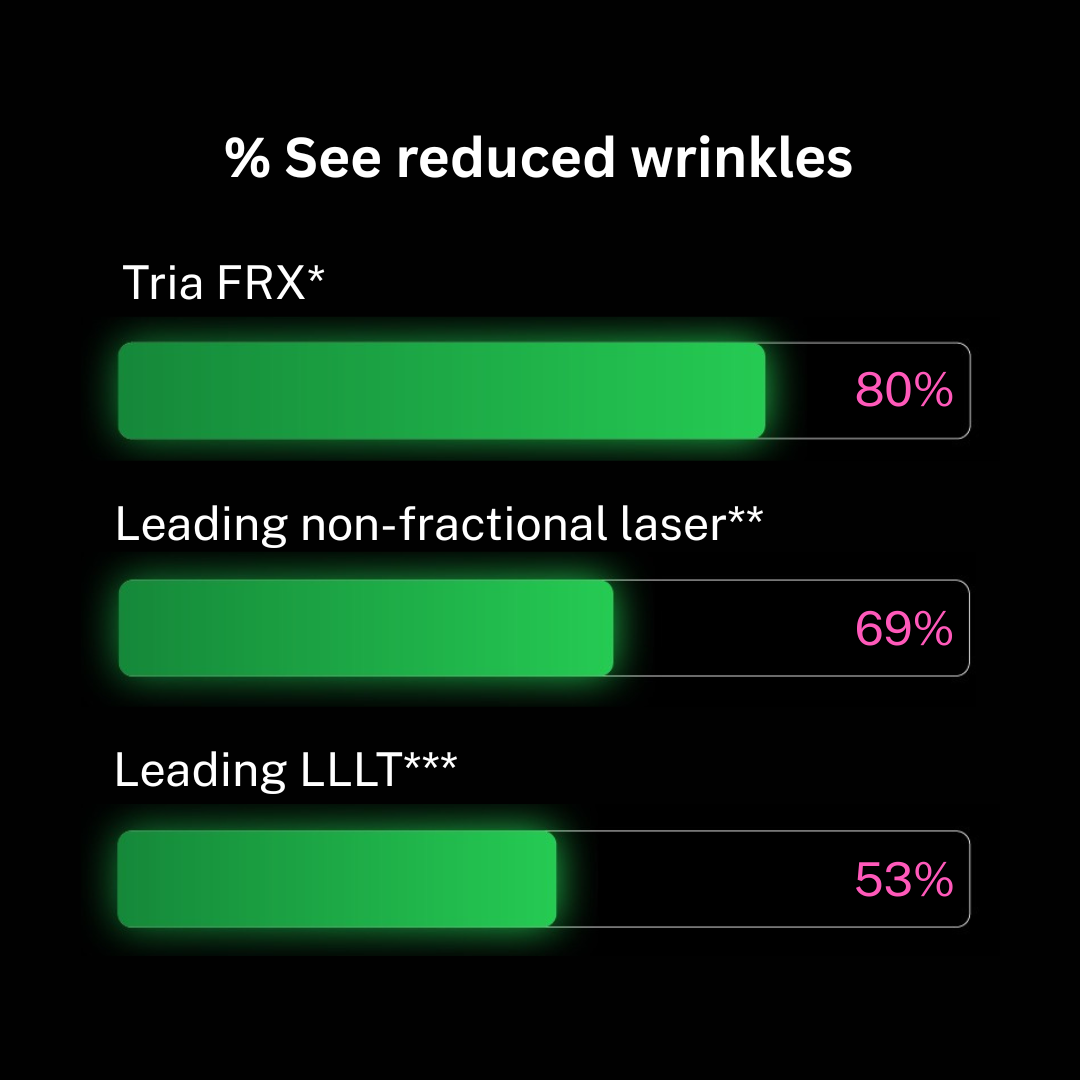 80% of Tria FRX users see reduced facial wrinkles* vs. just 69% with leading non-fractional laser** and just 53.8% with leading LLLT device.***